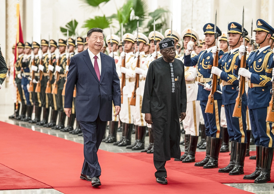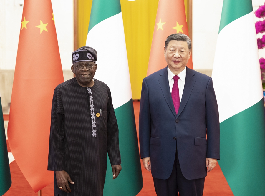 习近平指出,尼日利亚是具有重要影响的非洲大国,拥有巨大人口规模和发展潜力。建交半个多世纪以来,中尼始终相互尊重、平等相待,走出一条联合自强、合作共赢之路。近年来,两国在中非合作论坛框架内共同实施了一大批示范性、战略性合作项目。中国正在进一步全面深化改革、推进中国式现代化,这将为中尼关系发展带来更多机遇。双方要以高质量合作携手实现各自现代化,推动中尼关系实现新的更大发展。