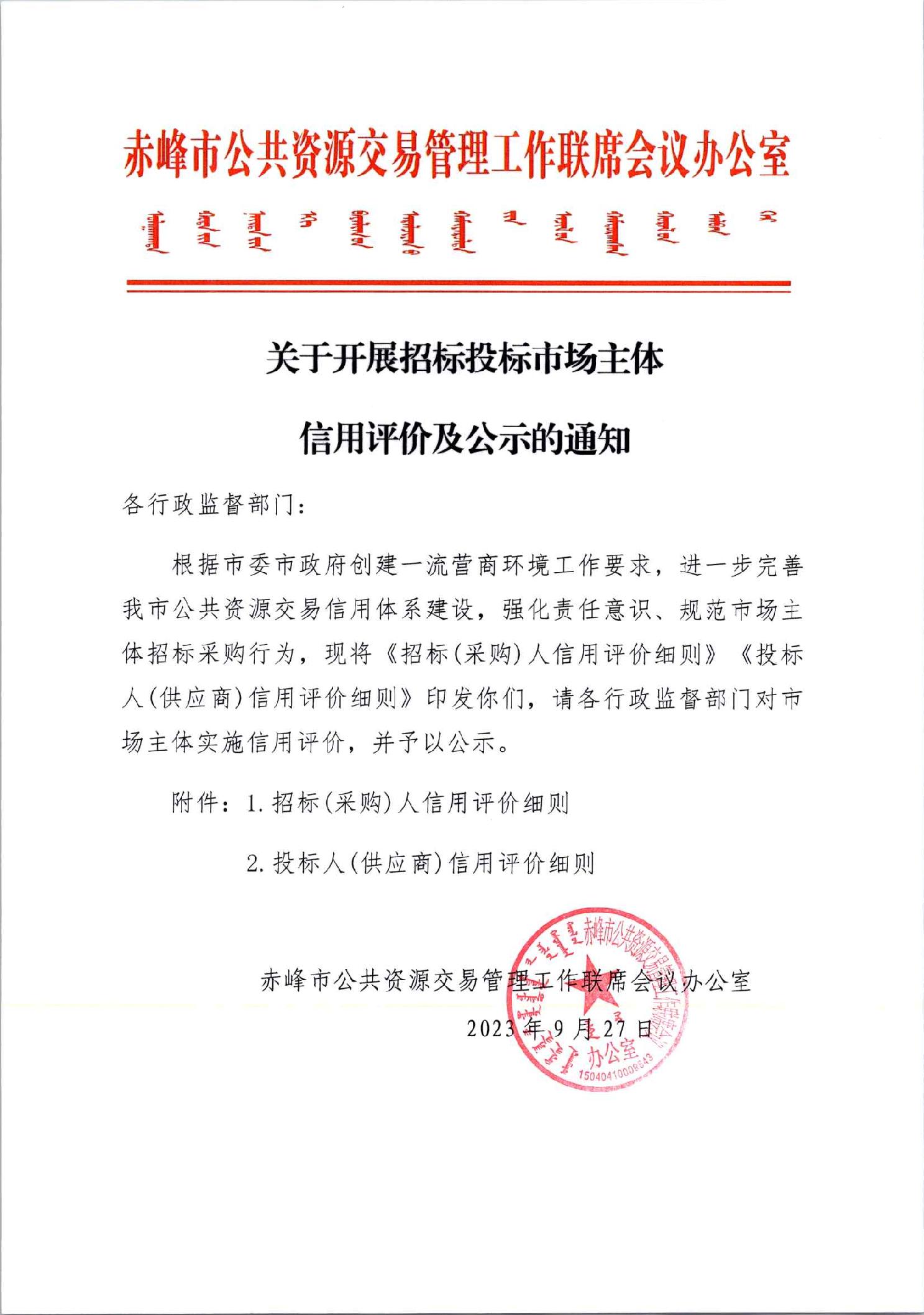 关于开展招标投标市场主体信用评价及公示的通知