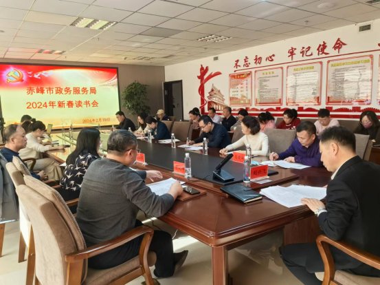 2月19日,赤峰市政务服务局召开党组理论学习中心组(扩大)学习会议暨新春读书会,班子成员,全体干部职工参加学习。